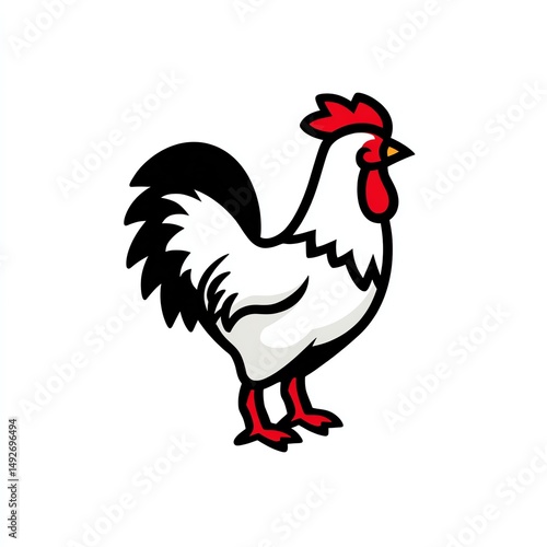 © Por, Fototapeta premium Majestic Rooster Illustration A Bold Black and Red Rooster Icon