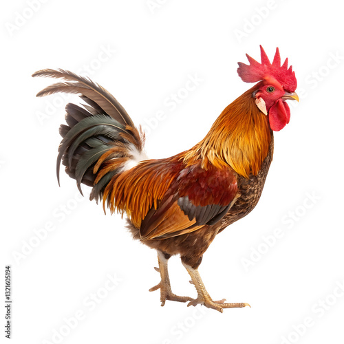 Fototapeta premium Majestic Rooster Standing On white Or png Background, Generative AI