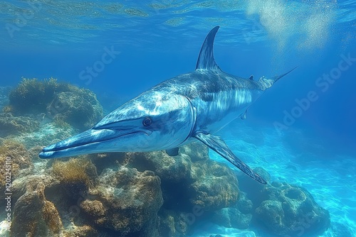 © NikahGeh, Obraz premium Majestic Sailfish Swims Through Ocean Depths