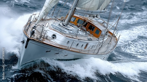 © novitasary, Naklejka premium Majestic Sailing Yacht Braving Stormy Seas