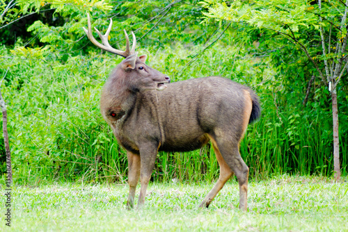 © PhatCha, Fototapeta premium Majestic Sambar Deer, Rusa unicolor in Khao Yai National Park, Thailand.