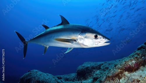 Fototapeta premium Majestic Sea Lion Encounter off the Shores of Socorro Island, Mexico Striking Portrait of a Playful Jack in Vivid Blue Waters
