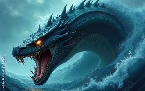 Fototapeta premium Majestic Sea Serpent Dragon Emerging from Ocean Waves Fantasy Art
