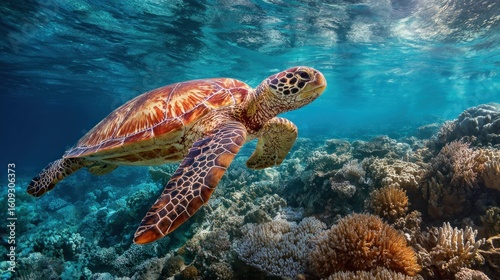 Obraz premium Majestic Sea Turtle in Vibrant Coral Reef
