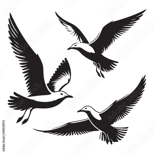 © Creative Image , Obraz premium Majestic Seagulls Soaring High A Vector Illustration Of Freedom