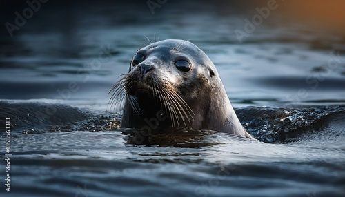 © Isabella, Obraz premium majestic seal with glowing eyes emerging from dark water