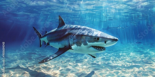 Obraz premium Majestic Shark Encounter. Underwater adventure concept