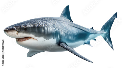 Fototapeta premium Majestic Shark Portrait: Captivating the powerful presence of a great white shark, this image reveals intricate details of its formidable form.