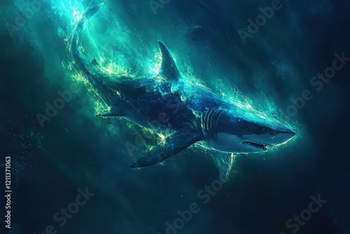 Fototapeta premium majestic shark swims with effortless power through the luminous ocean, its...