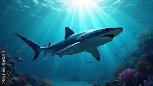 Fototapeta premium Majestic Shark Underwater Realm: A Digital Painting
