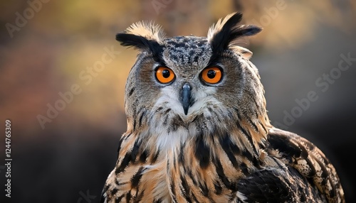 © netsay, Fototapeta premium Majestic Siberian Eagle Owl Bubo bubo sibiricus Perched in a Snowy Forest at Sunrise, Displaying Striking Yellow Eyes and Feathers against a Backdrop of Frosty Branches and White Snow.