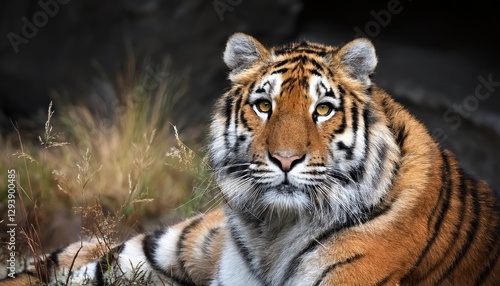 Fototapeta premium Majestic Siberian Tiger Roaming a Wintery Forest Twilight, Captured in the...