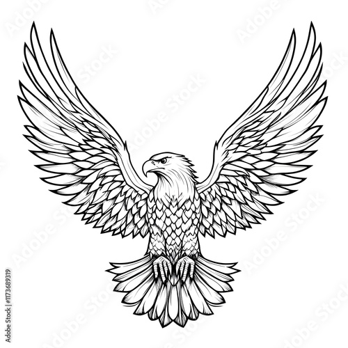 © ruangrit19, Obraz premium Majestic Sketch Eagle Tattoo Design with Symmetrical Wings Spread