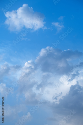 Fototapeta premium Majestic skies and clouds on a summer day near the coast. Blue vector clouds...