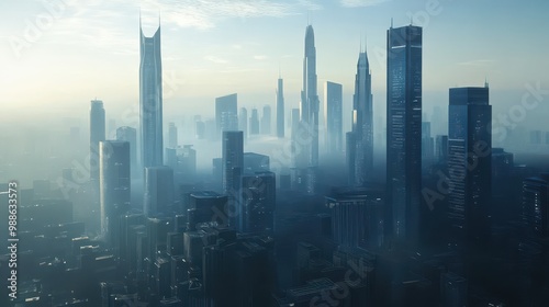 Obraz premium Majestic Skyline of a Modern Metropolis Shrouded in Mist