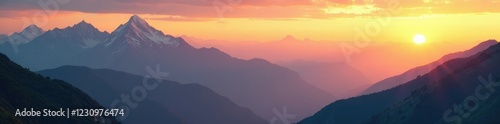 Fototapeta premium Majestic Smoky Mountain peaks bathed in warm golden light, sky, sun