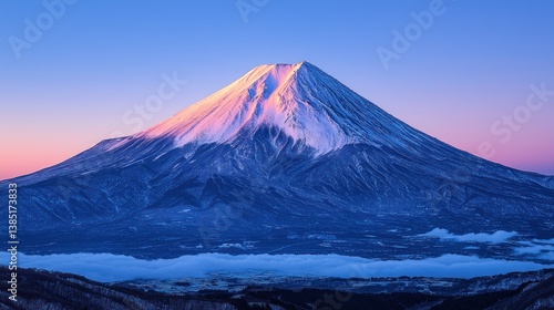 © Ikhsan, Fototapeta premium Majestic snow-capped mountain at sunrise.