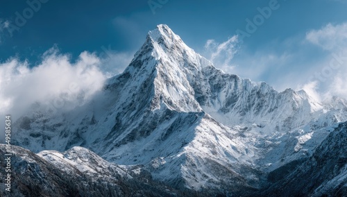 Obraz premium Majestic snow-capped mountain peak, dramatic clouds