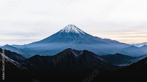 © Narongsag, Fototapeta premium Majestic Snow Capped Mountain Peak Panorama