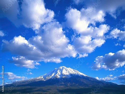 Fototapeta premium Majestic snow-capped mountain peak under a dramatic cloudy sky