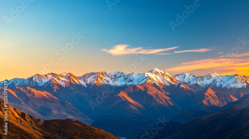 © pattaphorn, Fototapeta premium Majestic Snow-Capped Mountains at Sunset