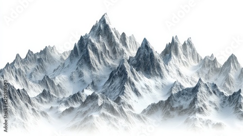 Obraz premium Majestic snow-capped mountains rise dramatically against a bright white sky,...