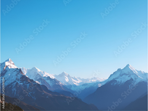 Fototapeta premium Majestic snow-capped mountains under a clear blue sky, winter landscape panorama
