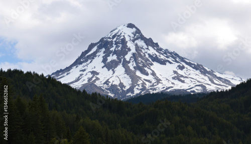 Fototapeta premium Majestic Snow-Capped Peak Amidst Verdant Forest