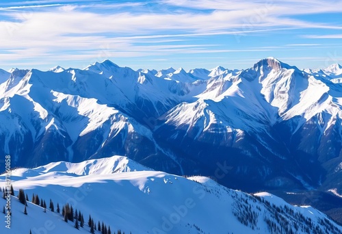 Fototapeta premium Majestic snow-capped peaks, pristine winter landscape, breathtaking panorama,...