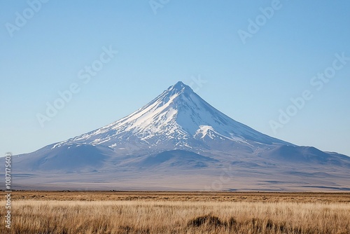 Fototapeta premium Majestic Snow-Capped Volcano Under Clear Blue Sky
