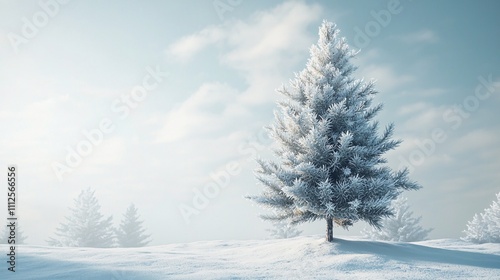 © Darunee, Fototapeta premium Majestic Snow-Covered Pine Tree in Winter Sunlight