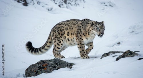 Obraz premium Majestic Snow Leopard in the Winter Wilderness
