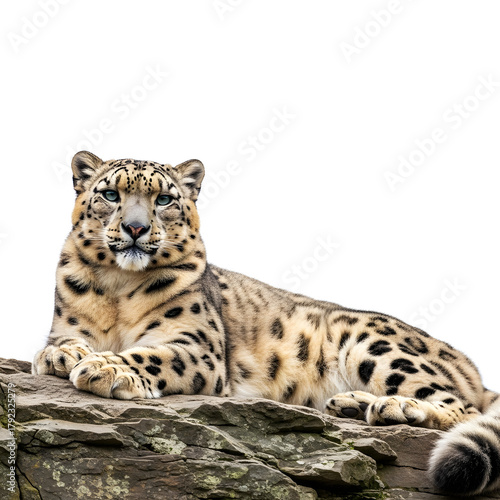 © Danseh, Fototapeta premium Majestic Snow Leopard Resting on Rocks