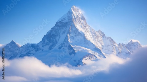 Fototapeta premium Majestic Snowcapped Mountain Peak Above Clouds