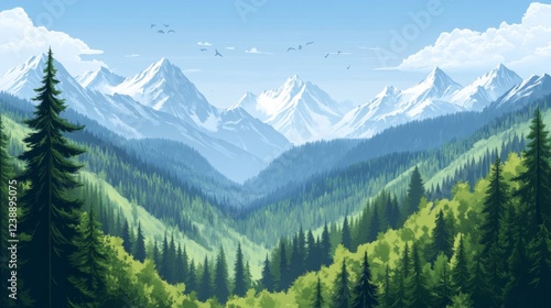 © Sleeping Carbuncle, Fototapeta premium Majestic Snowcapped Mountain Range and Lush Green Valley