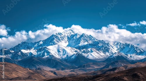 Fototapeta premium Majestic Snowy Mountain Range Under a Clear Blue Sky