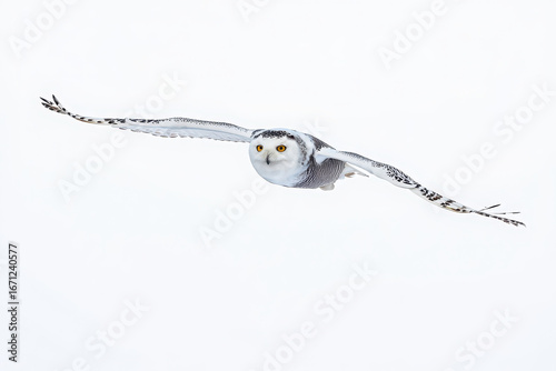 © Designer Raiful, Fototapeta premium Majestic snowy owl takes flight its wings spread wide capturing wilderness spirit