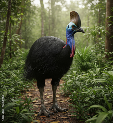 © Narena, Naklejka premium Majestic Southern Cassowary Standing in the Forest