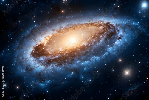 Fototapeta premium Majestic Spiral Galaxy in Deep Space with Brilliant Stellar Clusters and...