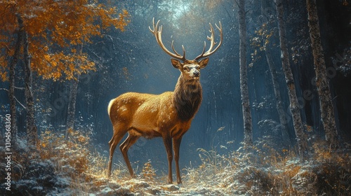 Fototapeta premium Majestic stag autumn forest snow light nature wildlife
