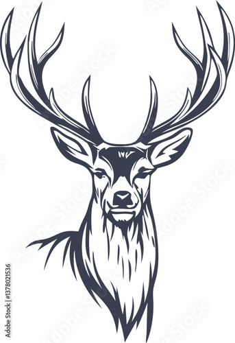 Fototapeta premium Majestic Stag Head, Antlered Deer, Wildlife, Nature, Graphic Design