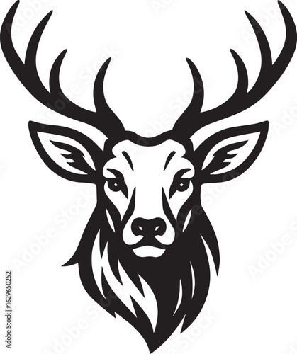 © Designer Ratul , Naklejka premium Majestic Stag Head Illustration a Stunning Black and White Vector Design for Nature and Wildlife Enthusiasts