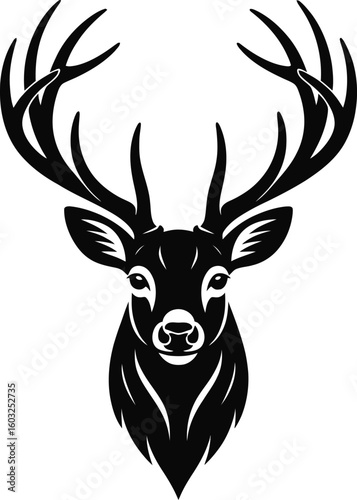 Fototapeta premium Majestic stag head with large antlers deer silhouette