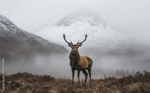 Fototapeta premium Majestic Stag in Misty Mountains