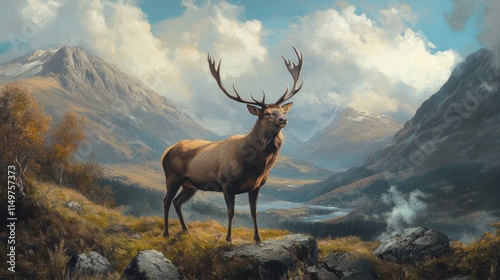 © almeera, Fototapeta premium Majestic Stag on a Mountain Peak