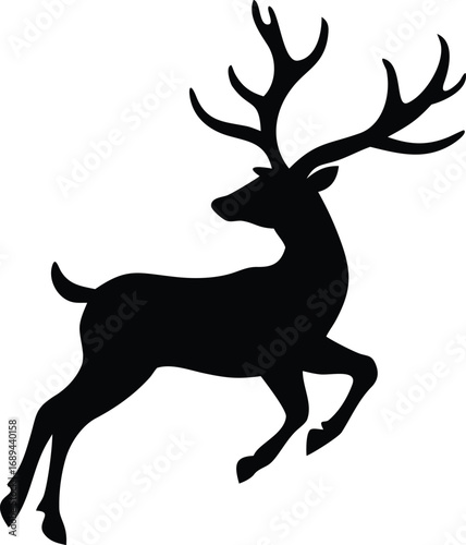© Mariam, Obraz premium Majestic stag with antlers in mid leap silhouette