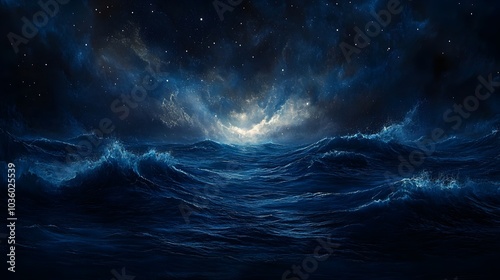 Fototapeta premium Majestic Starry Night Seascape with Moonlit Waves and Reflections
