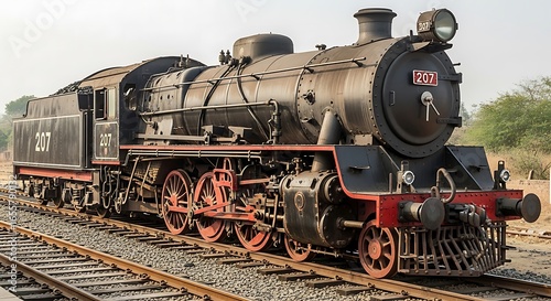 Fototapeta premium Majestic Steam Locomotive 207: A Vintage Indian Railway Engine