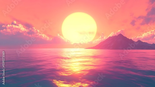 © Nayon, Naklejka premium Majestic sun setting behind clouds lighting serene sea high resolution picture