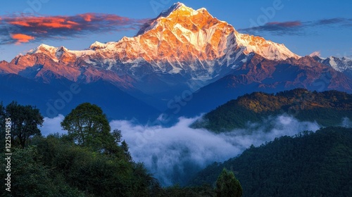 © Zam, Obraz premium Majestic sunrise illuminates snow-capped Himalayan peak.